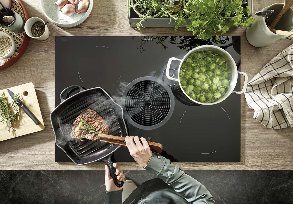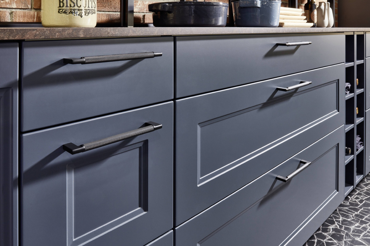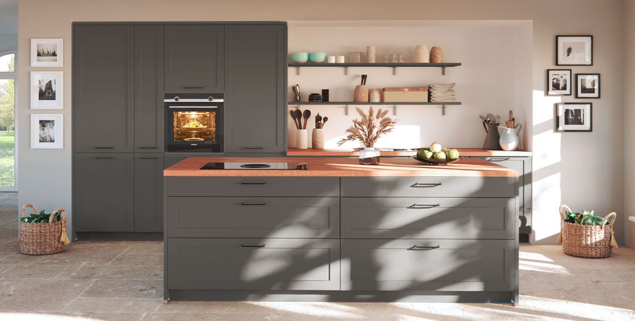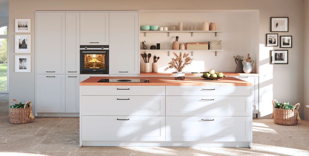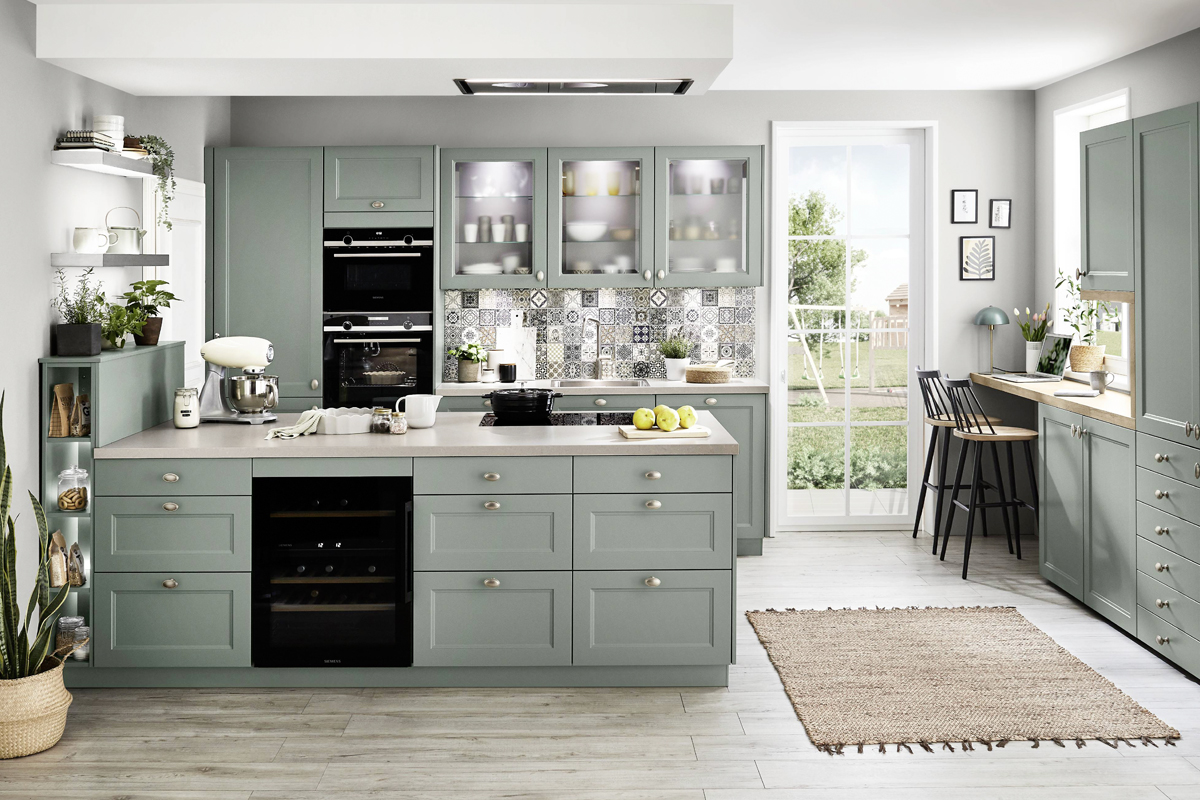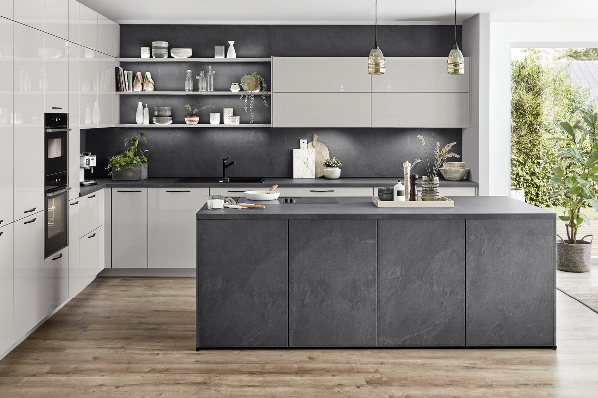 Inklusive Einbaubackofen Edelstahl Siemens HB510ABR1 Energieeffizienzklasse A, Glaskeramik Kochfeld mit Induktion und Kochfeldabzug (Umluft) Bora GP4U, Kühlschrank Laurus LKG88E Energieeffizienzklasse E, Einbauspüle Edelstahl Rodi Okio Line 85 Deep, XL-Schränken, Unterschränken mit Frontauszügen, Wandborden, Geschirrschränken.