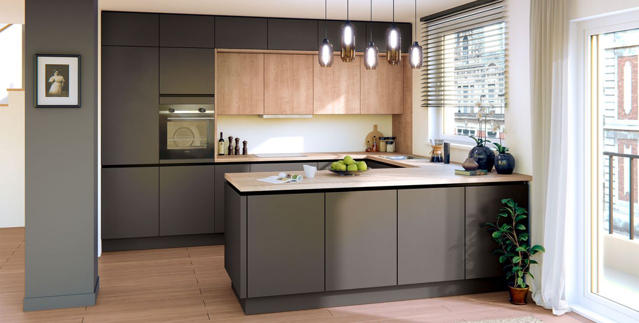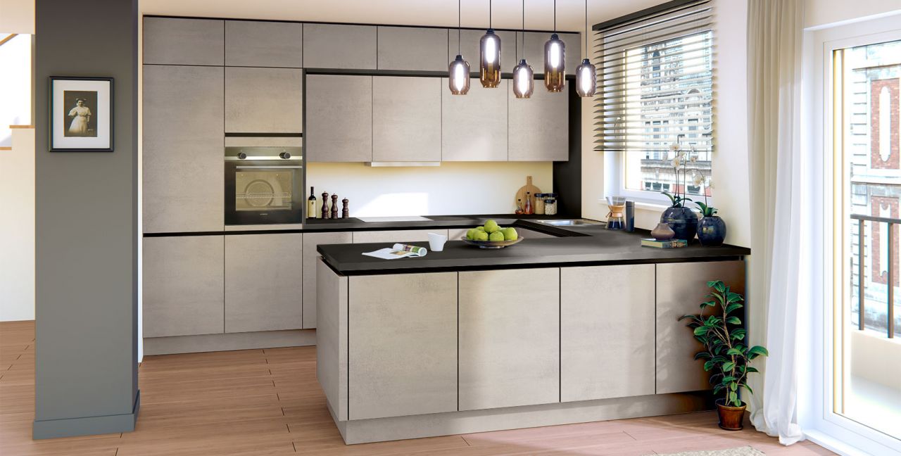 Inklusive Einbaubackofen Edelstahl Siemens HB510ABR1 Energieeffizienzklasse A, Glaskeramik Kochfeld Siemens ET645HN17E, Flachschirmhaube Elica ELITE 14 60-D Energieeffizienzklasse D, Kühlschrank Laurus LKG88E Energieeffizienzklasse E, Einbau-Designspüle Elleci Logik 300, XL-Schränken, Unterschrank mit Großraumauszügen.