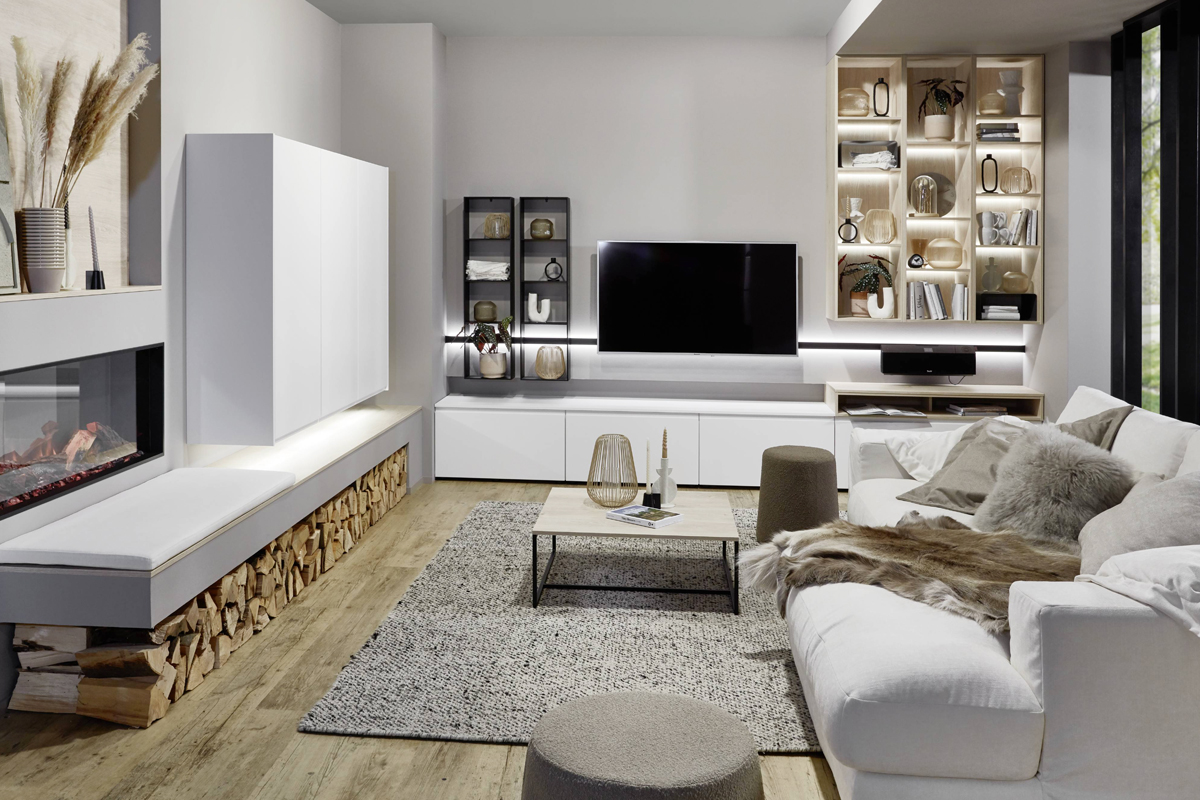 Inklusive Einbaubackofen schwarz Samsung NV7B4550VDK/U1 Energieeffizienzklasse A+, Glaskeramik Kochfeld mit Induktion Samsung NZ85C5047FK/U1, Designesse Edelstahl Samsung NK36M7070VBUR Energieeffizienzklasse B, Kühlschrank Beko BSSA210K4SN Energieeffizienzklasse E, Einbau-Designspüle Schock Formhaus D100, Unterschränken mit Großraumauszügen, Wandschränken mit Segmentglastüren.